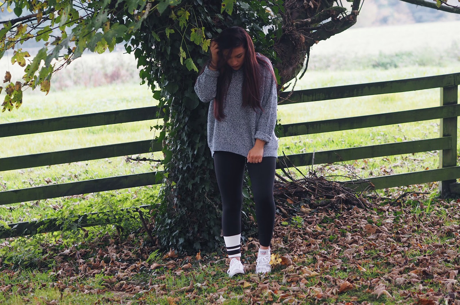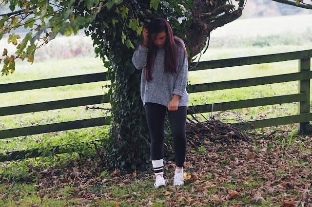 Just to show a different look with the Ellesse leggings and Converse, I threw on an oversized/slouchy jumper (a fave of mine at the moment). This one is from Penneys/Primark, and at €9 it was such a steal. I bought it about 6 sizes too big for me, to have that baggy/overized look.